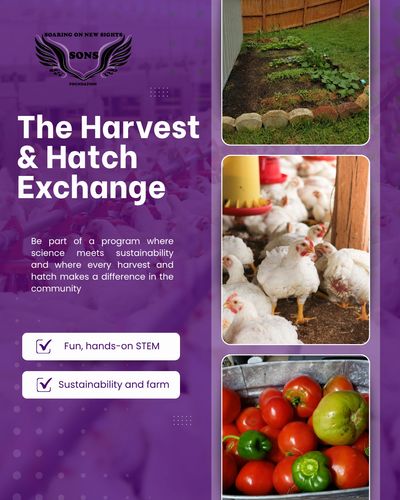 The Harvest & Hatch Exchange Program combines the best of both worlds — innovative STEM-based gardening and hands-on poultry science — to empower youth ages 7-17 with skills in sustainability, agriculture, and community service. Through this program, participants learn how to grow fresh, nutritious food and care for poultry while using modern technology to promote healthy living and stronger communities.