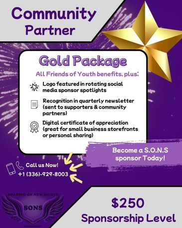 Support the mission of Soaring On New Sights Foundation and become part of our impact on youth and the community. We offer several sponsorship levels designed to recognize your support while helping us continue to empower young people to soar toward their goals.